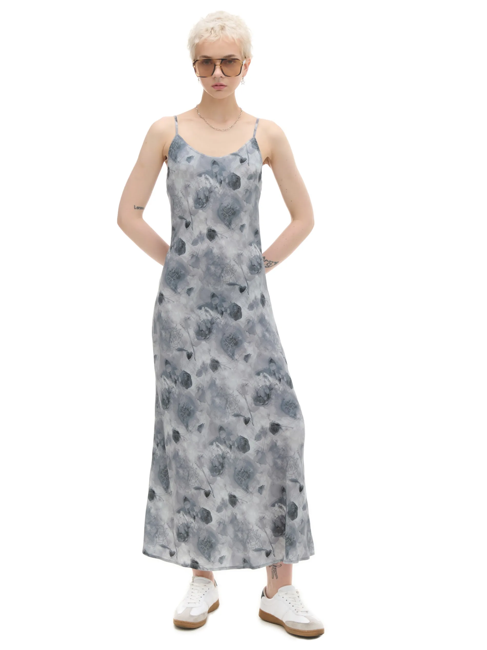 Sukienka na ramiączkach o długości maxi z półokrągłym dekoltem, uszyta z lekkiej wiskozowej tkaniny. Idealna na letnie dni! 100% wiskozy długość maxi i dopasowany krój delikatne taliowanie półokrągły dekolt wąskie ramiączka z regulacją długości nadruk all over