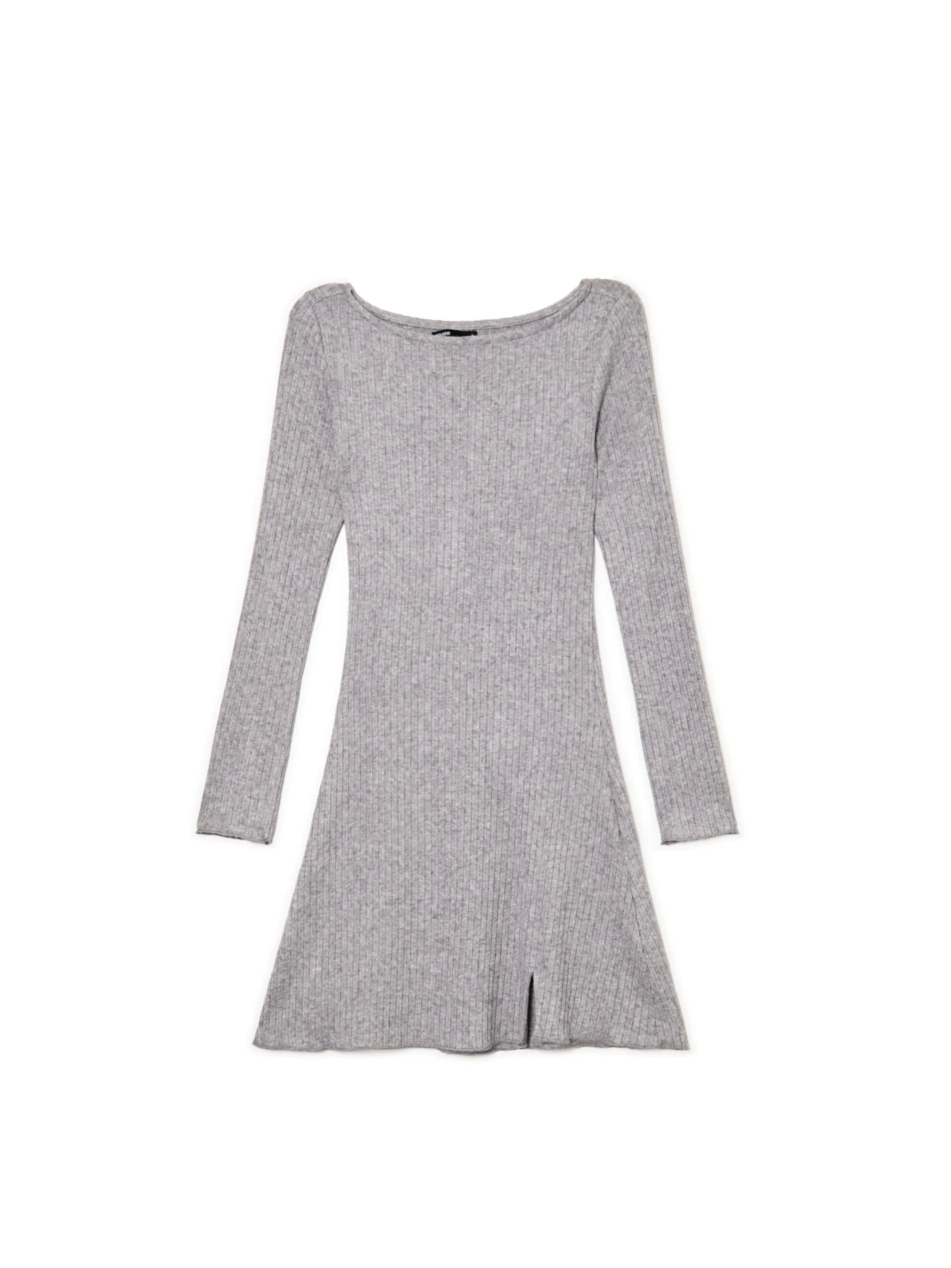 Jesienne spotkania z bestie, tylko w cozy sukienkach! Właśnie na takie okazje mamy dla Ciebie damską sukienkę mini, uszytą z mieszanki dzianin z prążkowaniem na całej powierzchni. Dostępna również w klasycznym, czarnym kolorze. uszyta z prążkowanej dzianiny zawierającej wiskozę długość mini rozkloszowany dół dekolt w łódkę długie, dopasowane rękawy dekoracyjne rozcięcie z przodu