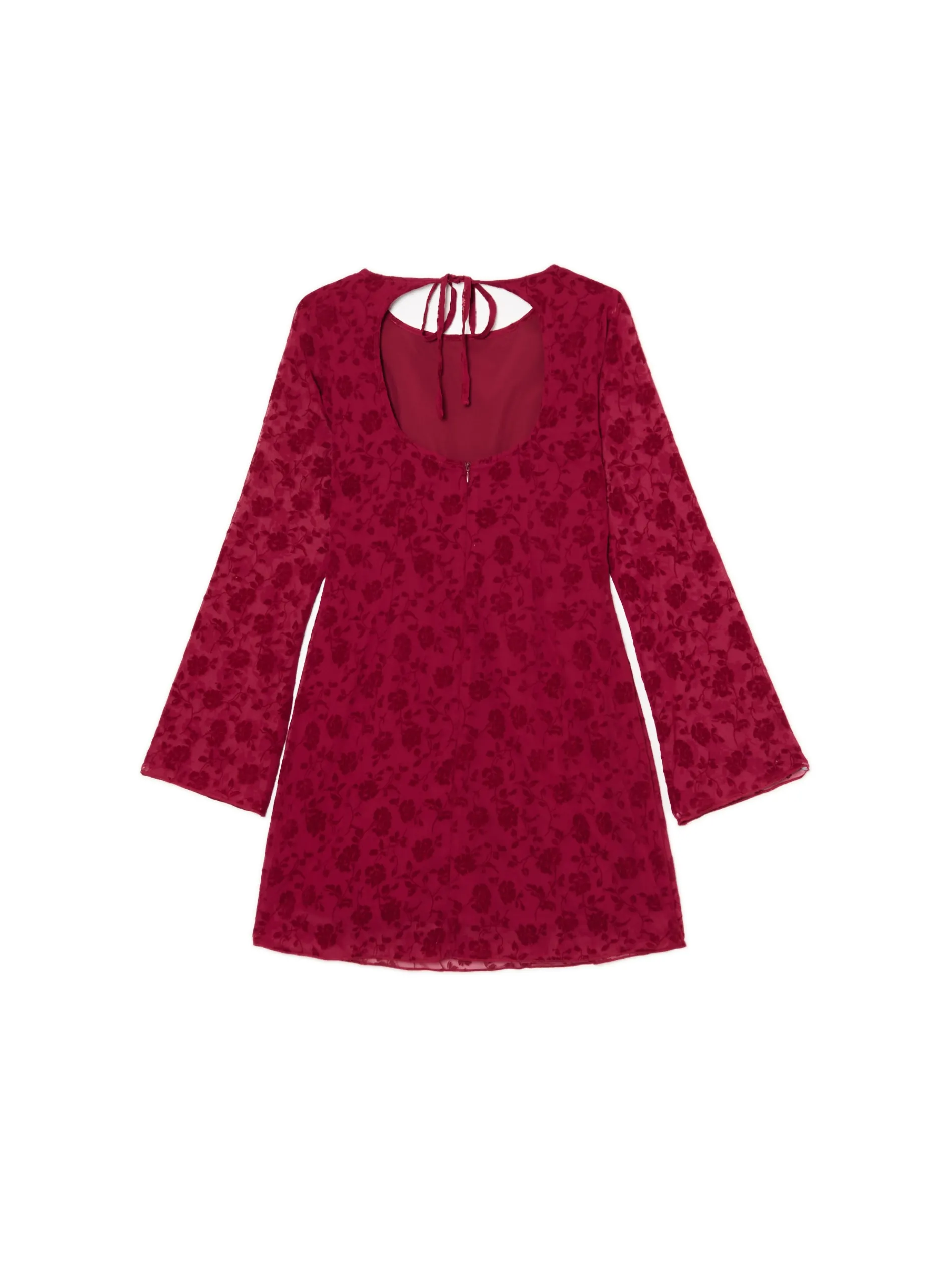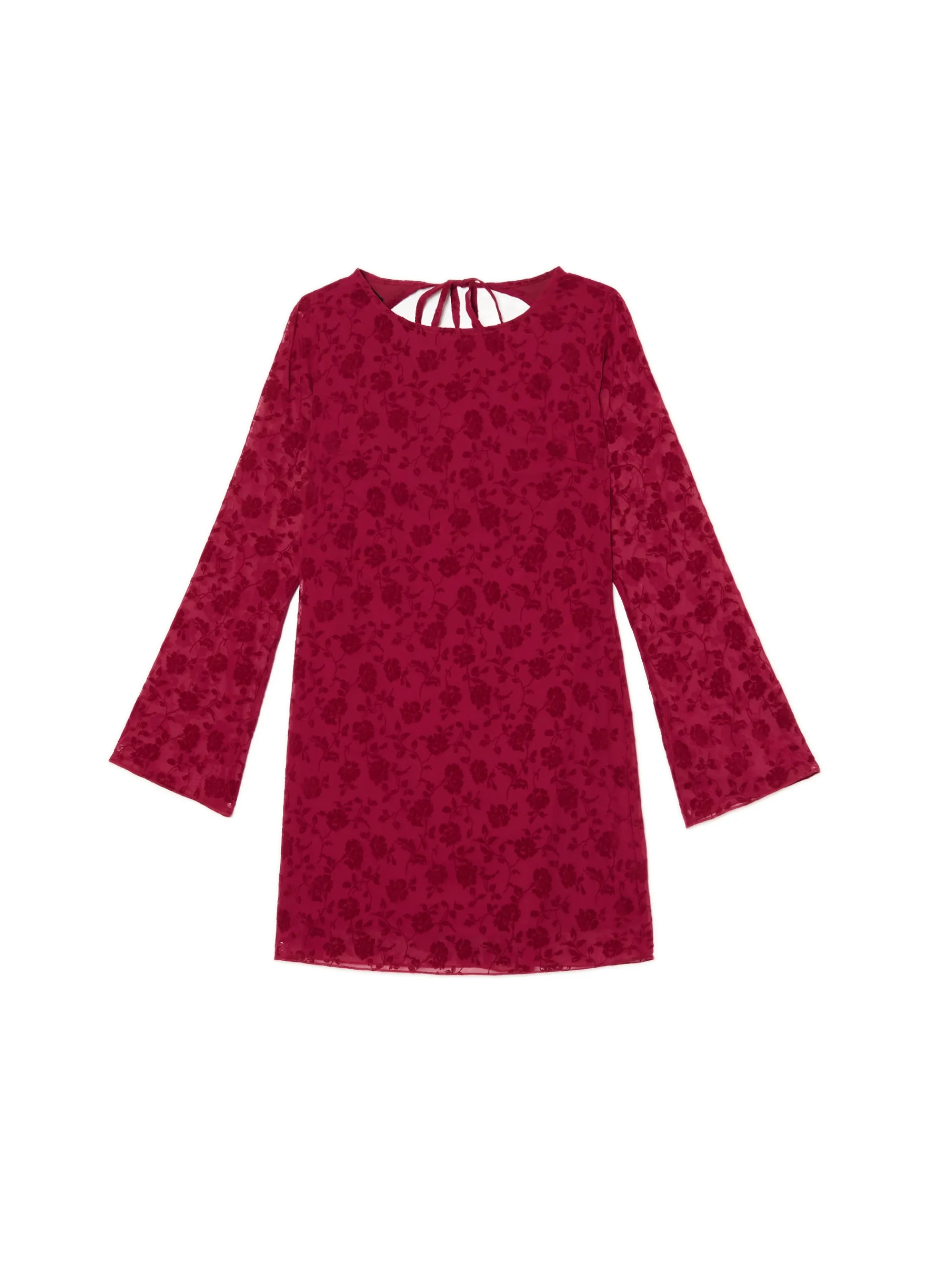 Wzorzysta sukienka o długości mini wykonana z prześwitującego szyfonu z kwiatowym wzorem. Idealna na spontaniczne wyjścia z przyjaciółmi! uszyta z szyfonowej tkaniny w kwiatowy wzór długość mini wewnątrz gładka podszewka zapięcie na kryty zamek z tyłu ozdobne wiązanie na plecach półokrągły dekolt z lamówką efektowne, odkryte plecy lekko rozszerzane rękawy kwiatowy wzór