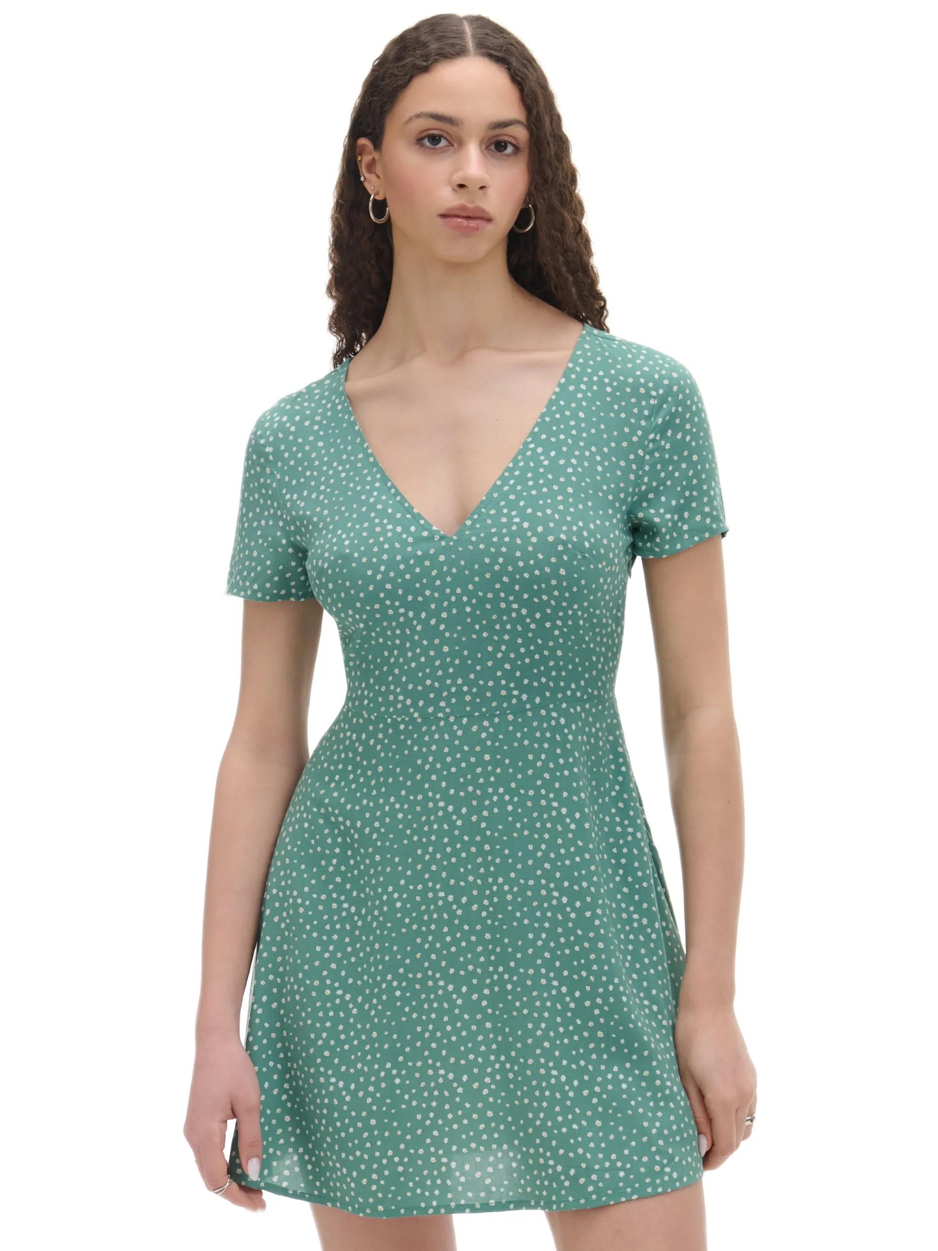 Cropp Sukienki, Kombinezony*Zielona sukienka mini w stokrotki