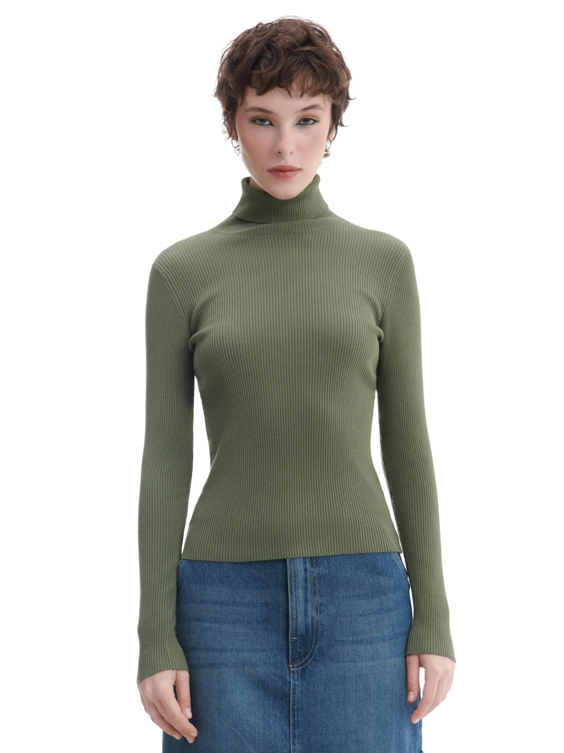 Damski sweter z pógolfem, uszyty z dzianiny o wysokiej zawartości bawełny. regularny krój prążkowana struktura półgolf pod szyją dostępne inne warianty kolorystyczne Wzrost modelki: 176 cm
