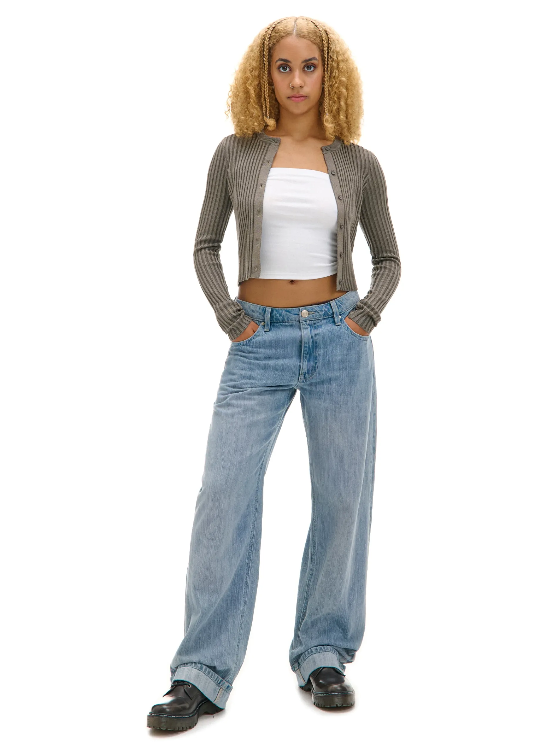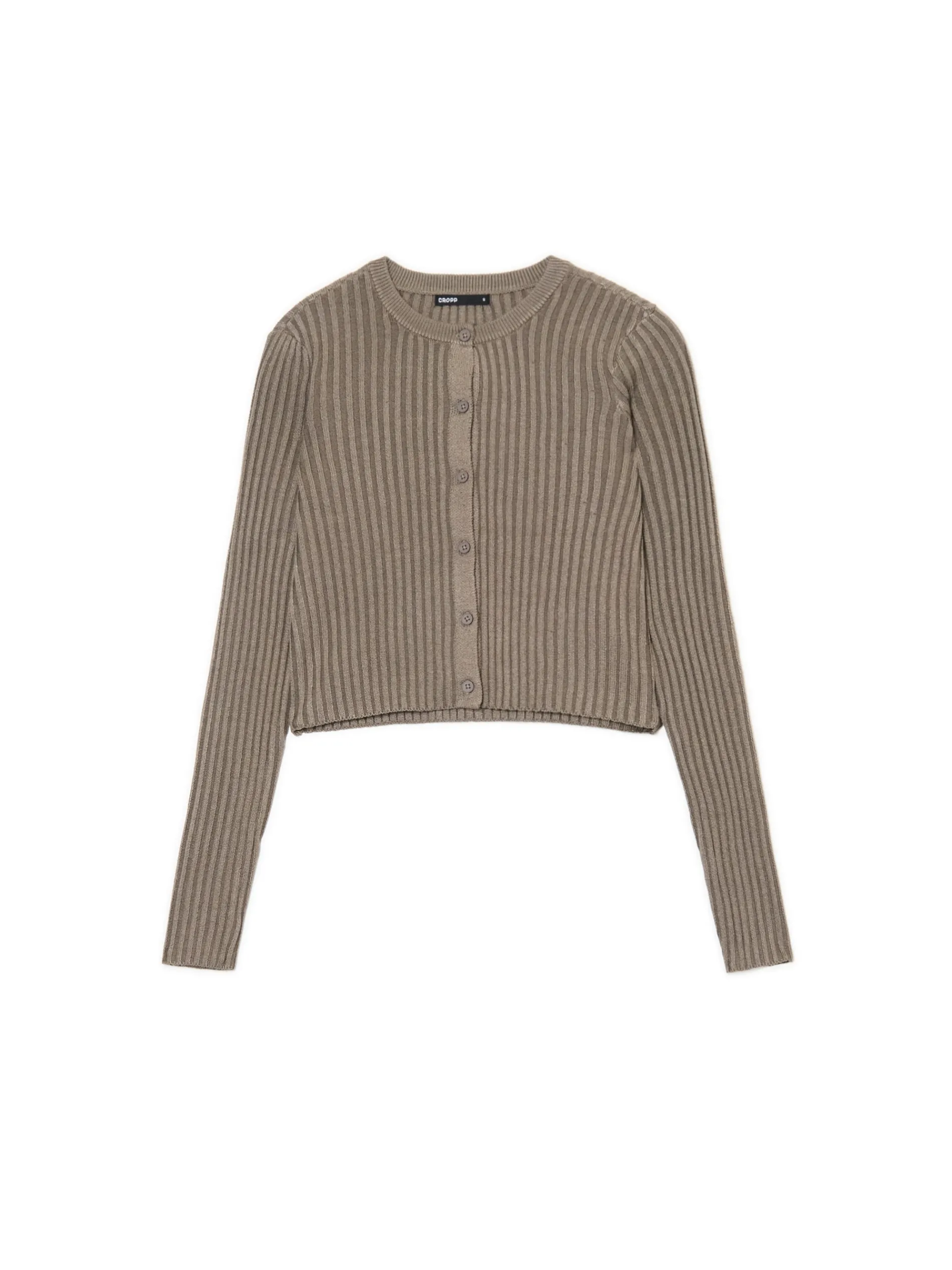 Krótki sweter damski typu kardigan uszyty z mieszanki dzianin. Wiskoza nadaje temu casualowi lekkości, a prążkowanie na całej powierzchni odpowiedniego stylu. Ten retro item warto mieć w szafie na wszelki wypadek. uszyty z dzianiny o wysokiej zawartości wiskozy prążkowany materiał krótki krój zapięcie na guziki na całej długości okrągły dekolt z lamówką długie, dopasowane rękawy