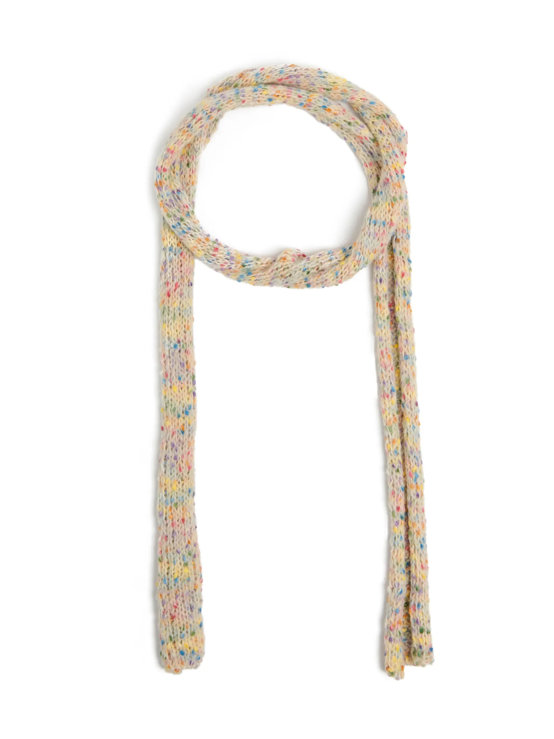 Damski szalik uszyty z delikatnej, miłej w dotyku dzianiny. Te malutkie, kolorowe wypustki oplecione na dodatkowej nici nadają wyjątkowości temu modelowi.