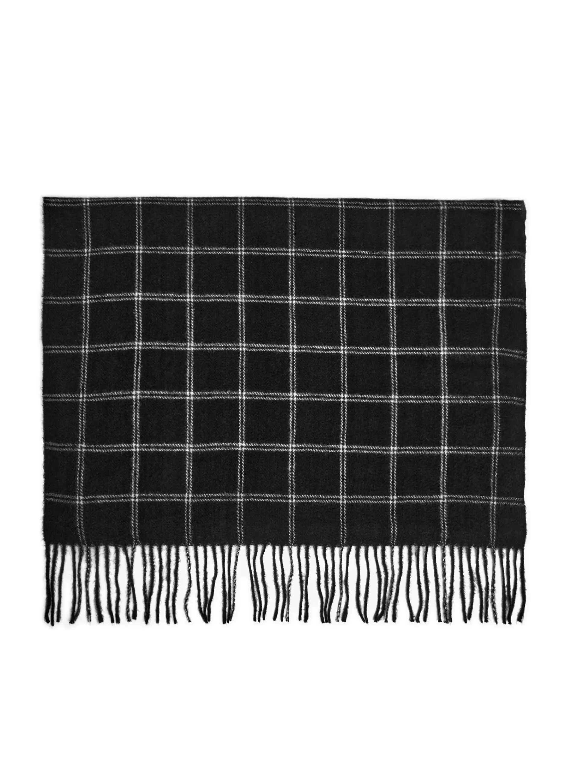 Każda kobieca szafa powinna być wyposażona w oryginalne i bardziej klasyczne itemy. Ten dzianinowy, kraciasty szalik z frędzlami chętnie zasili tę drugą część Twojej garderoby. lekka tkanina z recyklingowanego poliestru prosty krój wzór w kratę długie, dekoracyjne frędzle na brzegach