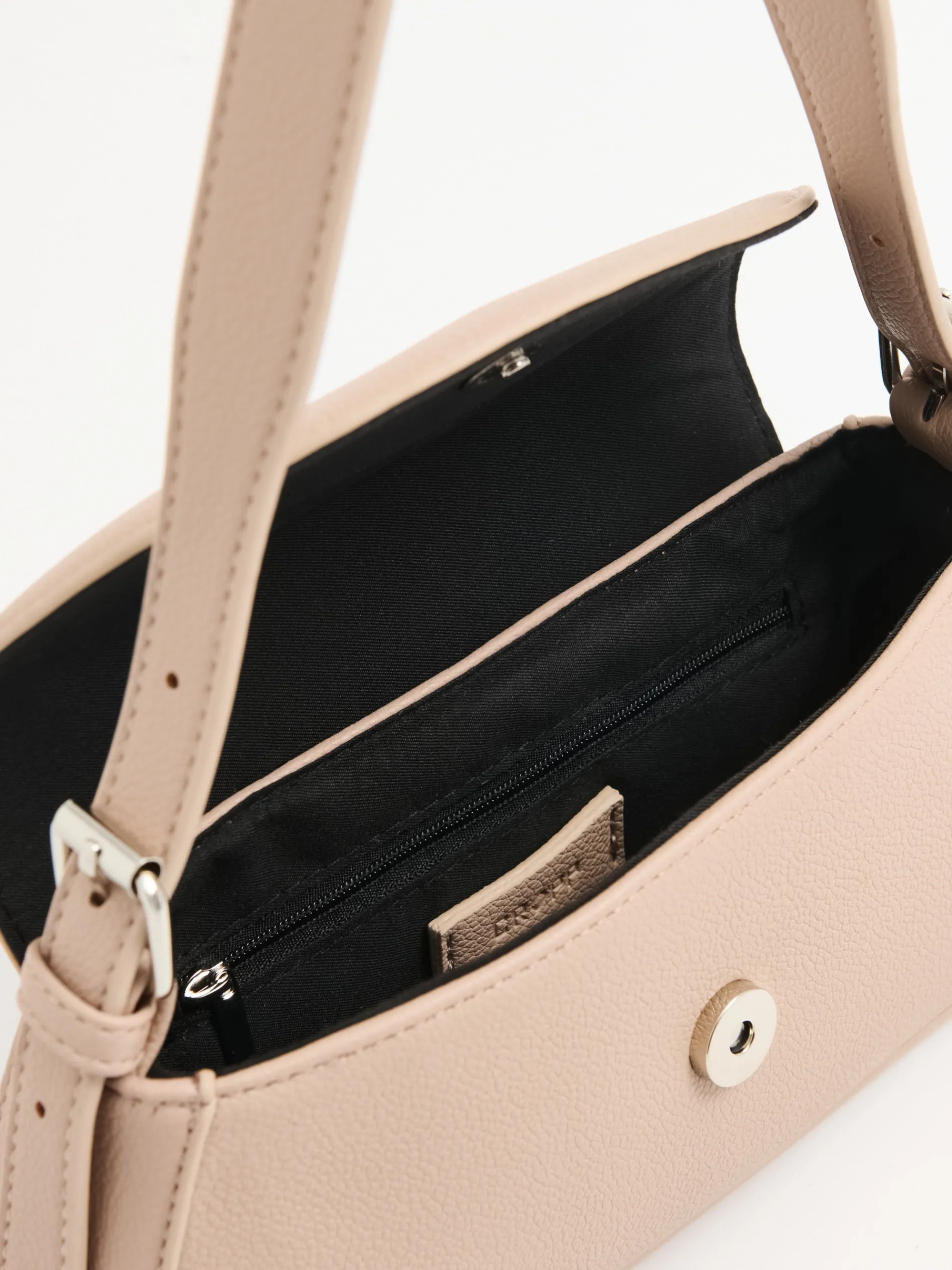 Mała damska torebka wykonana ze sztucznej skóry w kolorze beżowym. Zapinana na magnes, wyposażona w pasek z regulacją długości. Wewnątrz miejsce na najpotrzebniejsze itemki. Idealny dodatek do imprezowych stylizacji. mała torebka z imitacji skóry klapa zamykana na magnes pasek z regulacją długości wewnątrz kieszeń zapinana na zamek naszywka Cropp