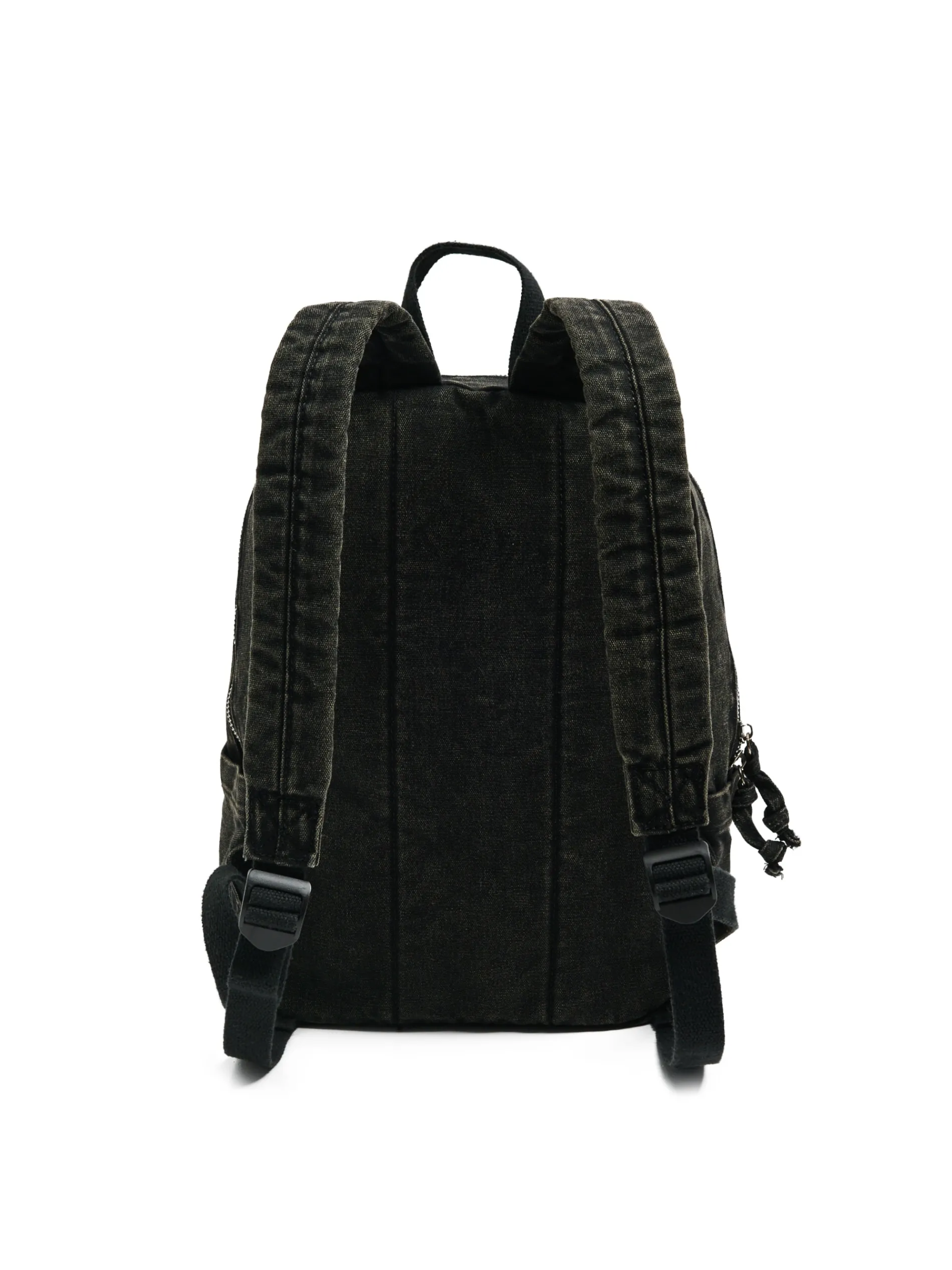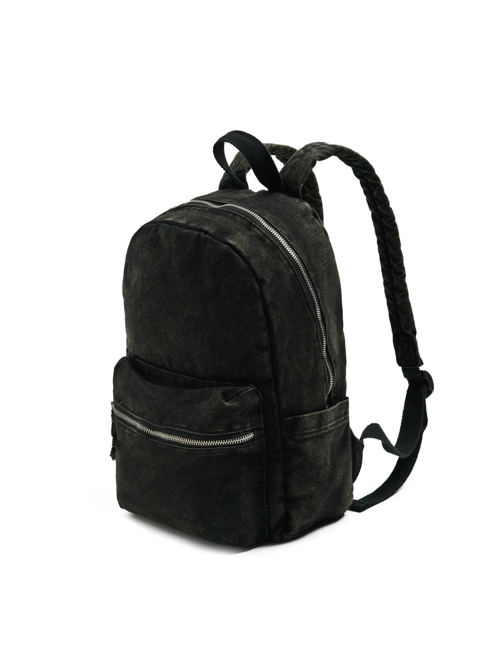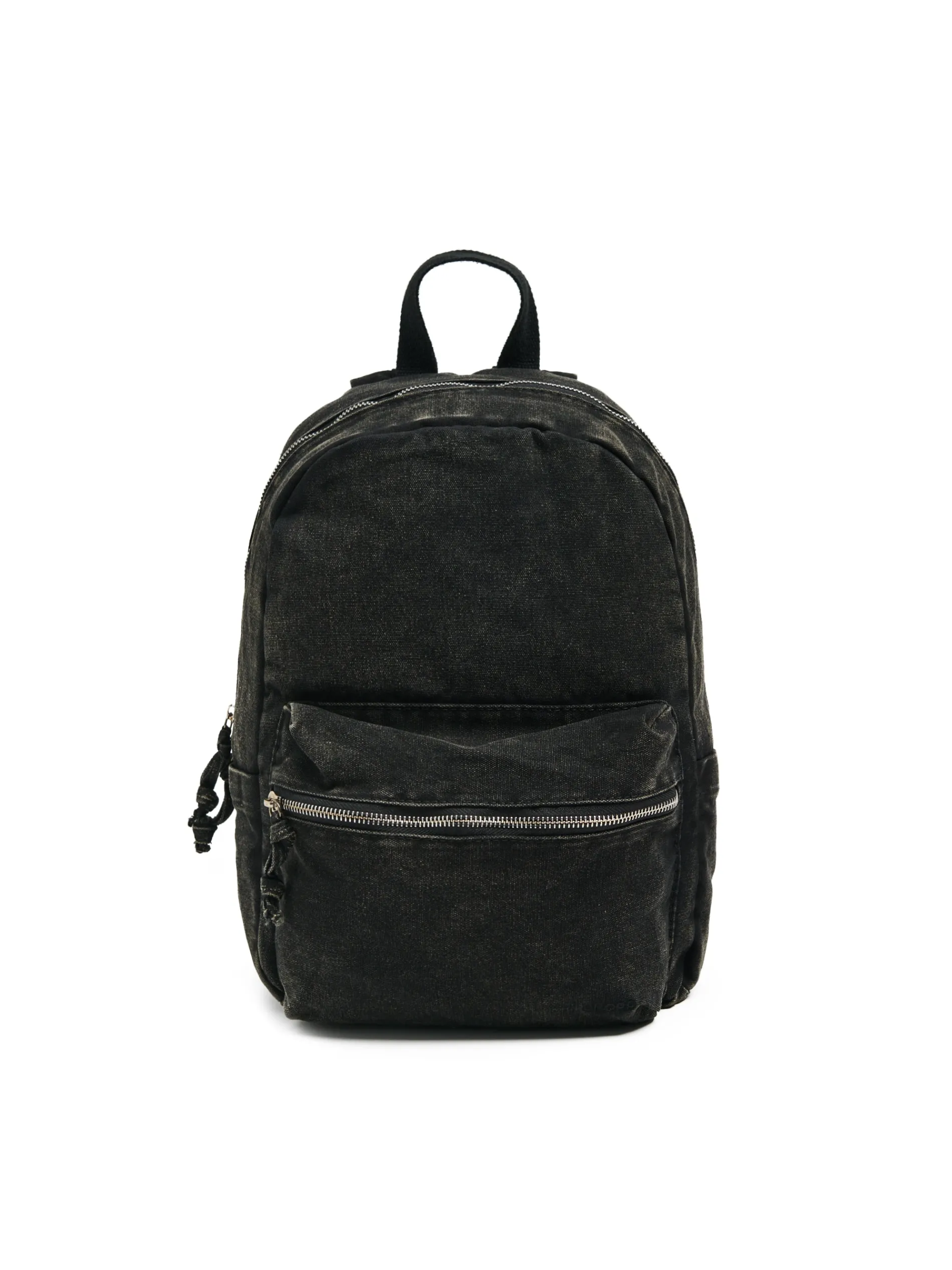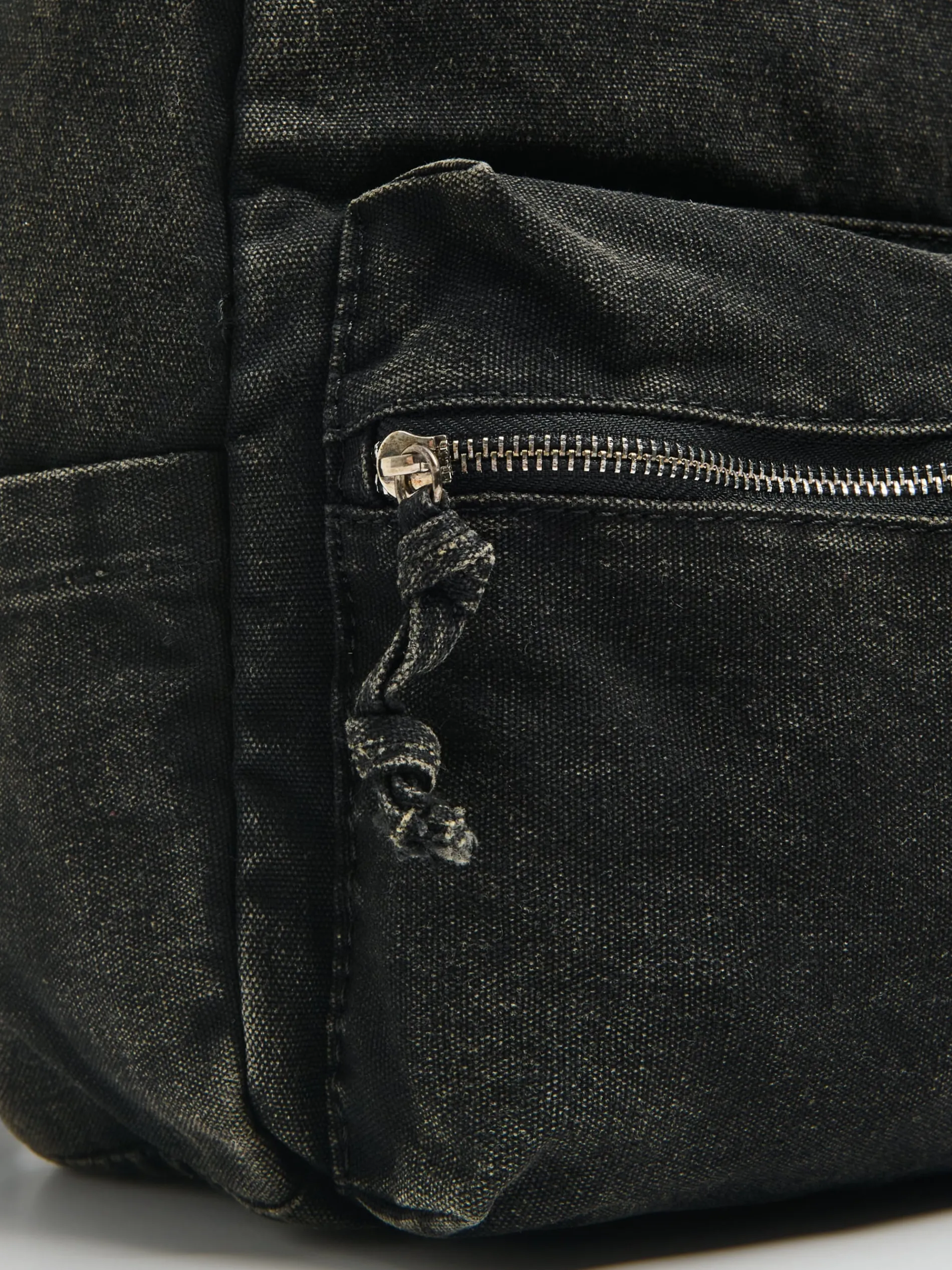 Pojemny i praktyczny damski plecak, uszyty z materiału imitującego denim. Idealny do szkoły lub pracy! główna komora i kieszeń z przodu zapinane na suwaki regulowane szelki w środku kieszeń na laptopa efekt sprania all over Wymiary produktu: 40x30x10 cm