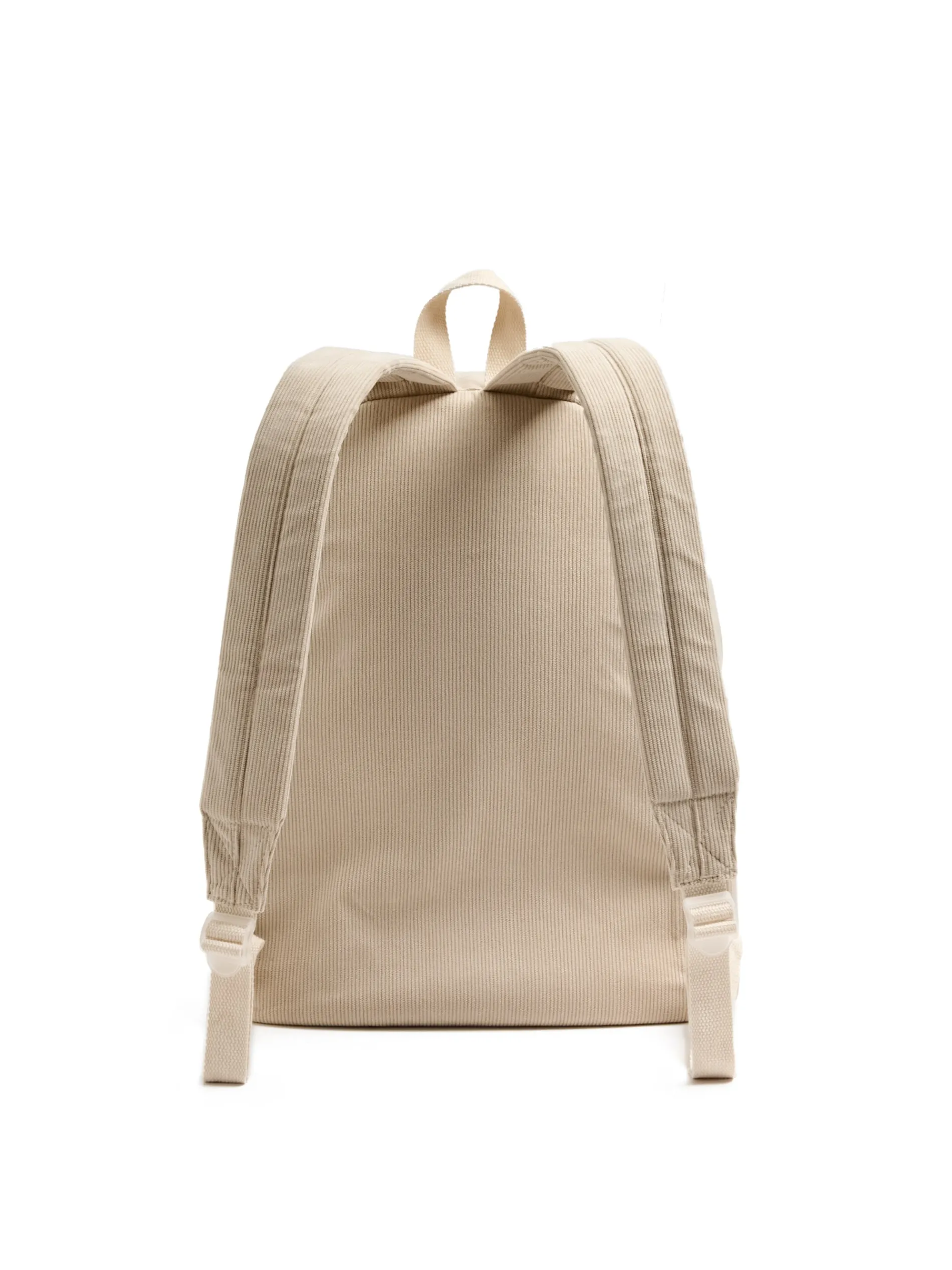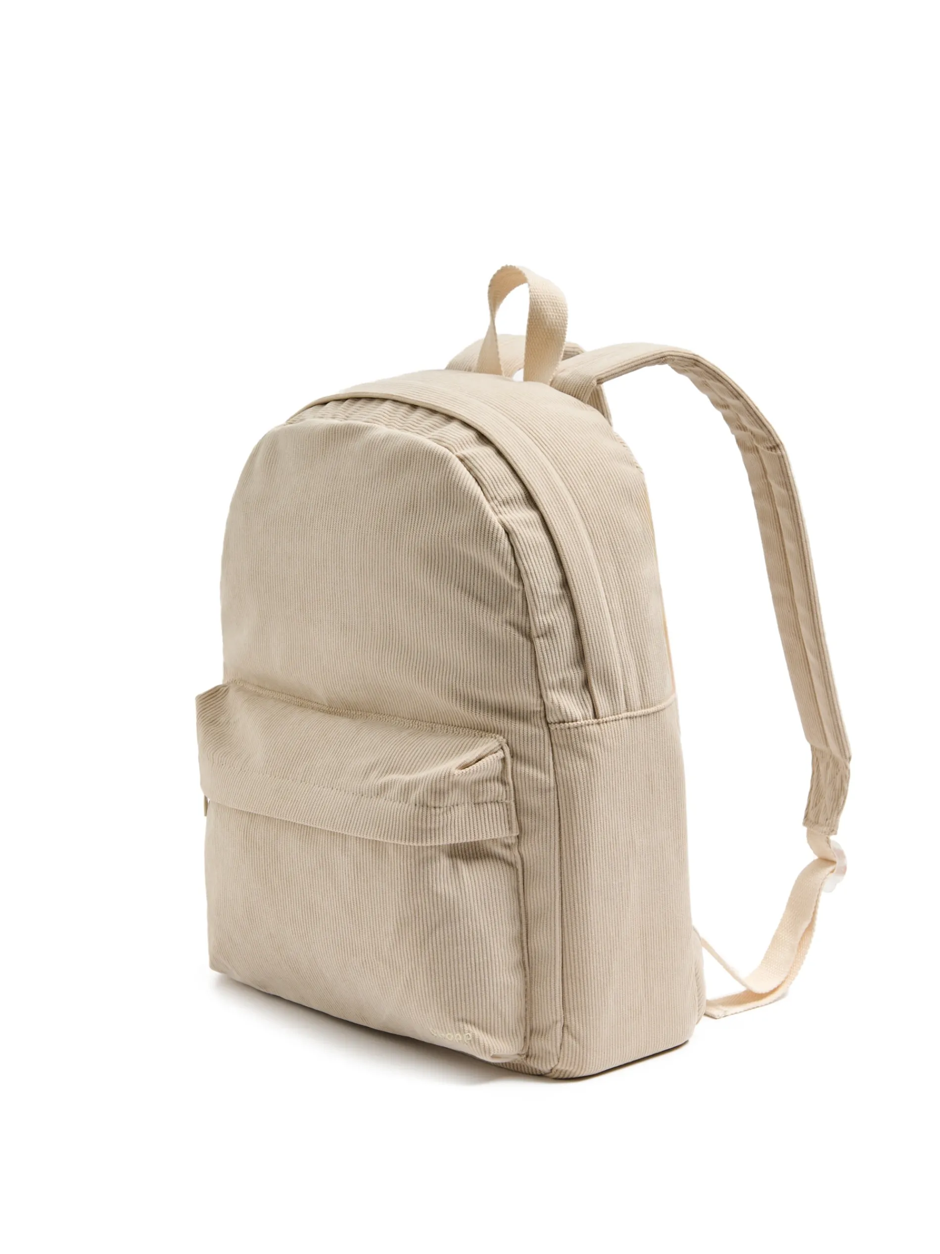 Pojemny damski plecak, uszyty z wytrzymałej, kremowej tkaniny sztruksowej. Idealny do pracy lub szkoły! główna komora zapinana na suwak dodatkowa zewnętrzna kieszeń zapinana na suwak wewnątrz duża kieszeń na laptopa i dodatkowe kieszonki na klucze, telefon czy portfel regulowane szelki mały haft z przodu Wymiary produktu: 43 x 31 x 12 cm