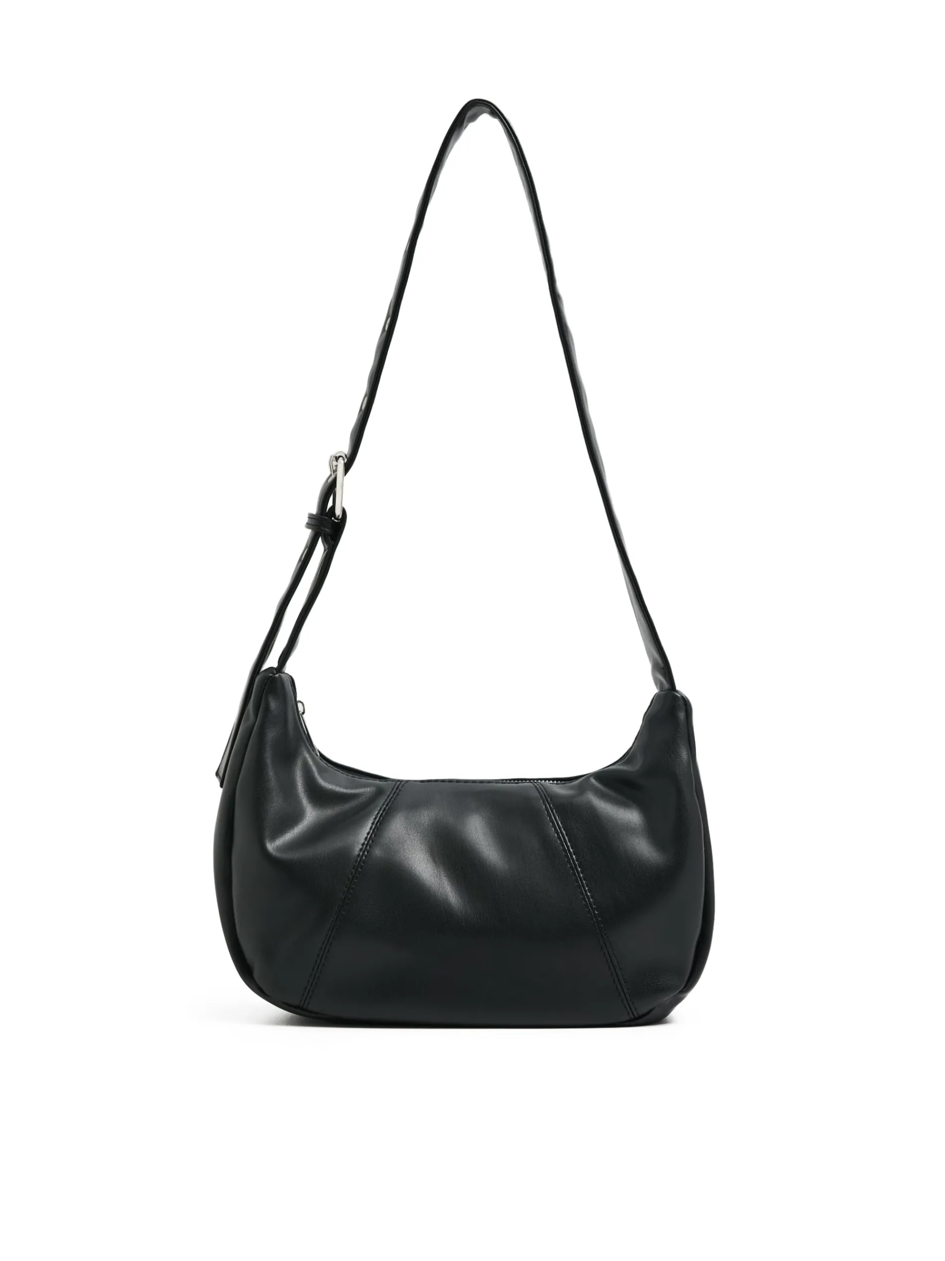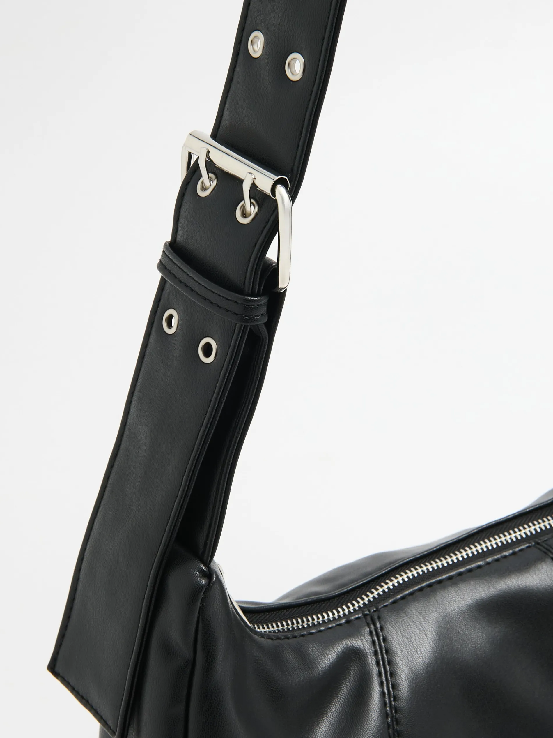 Czarna damska torebka na ramię, wykonana z imitacji skóry. Idealne uzupełnienie luźnej stylówki! regulowny pasek na ramię zapięcie na suwak wewnętrzna kieszonka zapinana na suwak