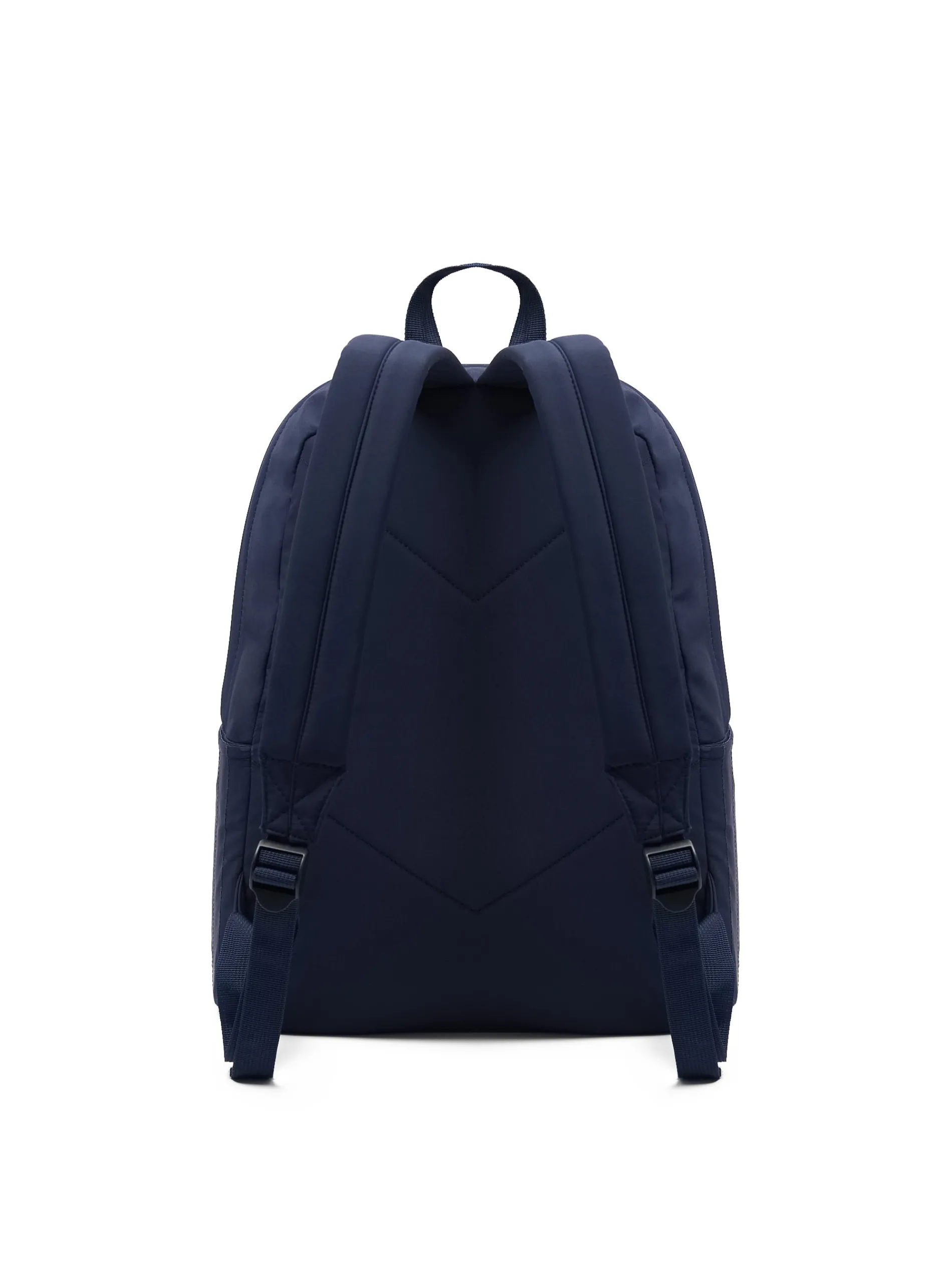 Klasyczny damski plecak, uszyty z wytrzymałej granatowej tkaniny. szelki z regulacją długości główna komora z zapięciem na zamek dodatkowa kieszeń zewnętrzna z zapięciem na zamek wewnętrzna kieszeń na laptopa pojedynczy uchwyt u góry z przodu minimalistyczna naszywka z napisami Wymiary produktu: 43 x 32 x 13 cm