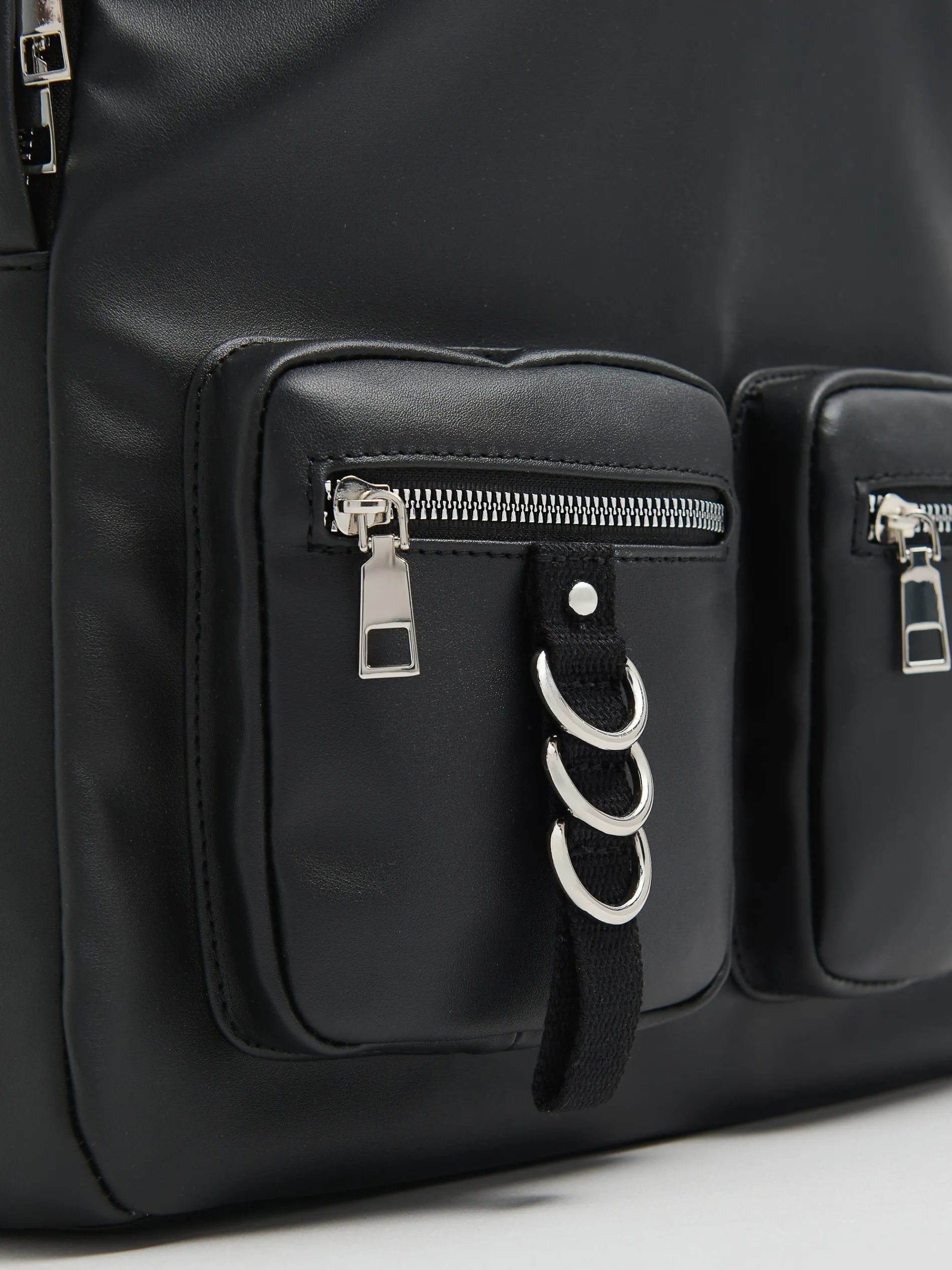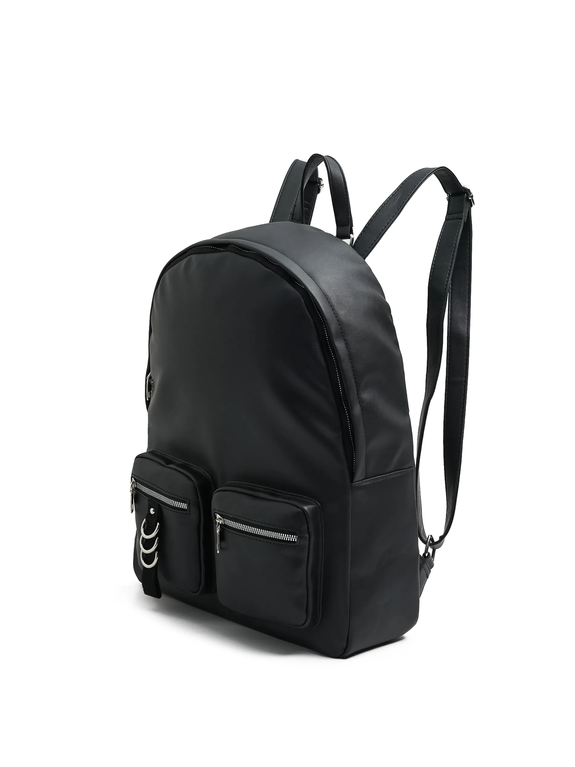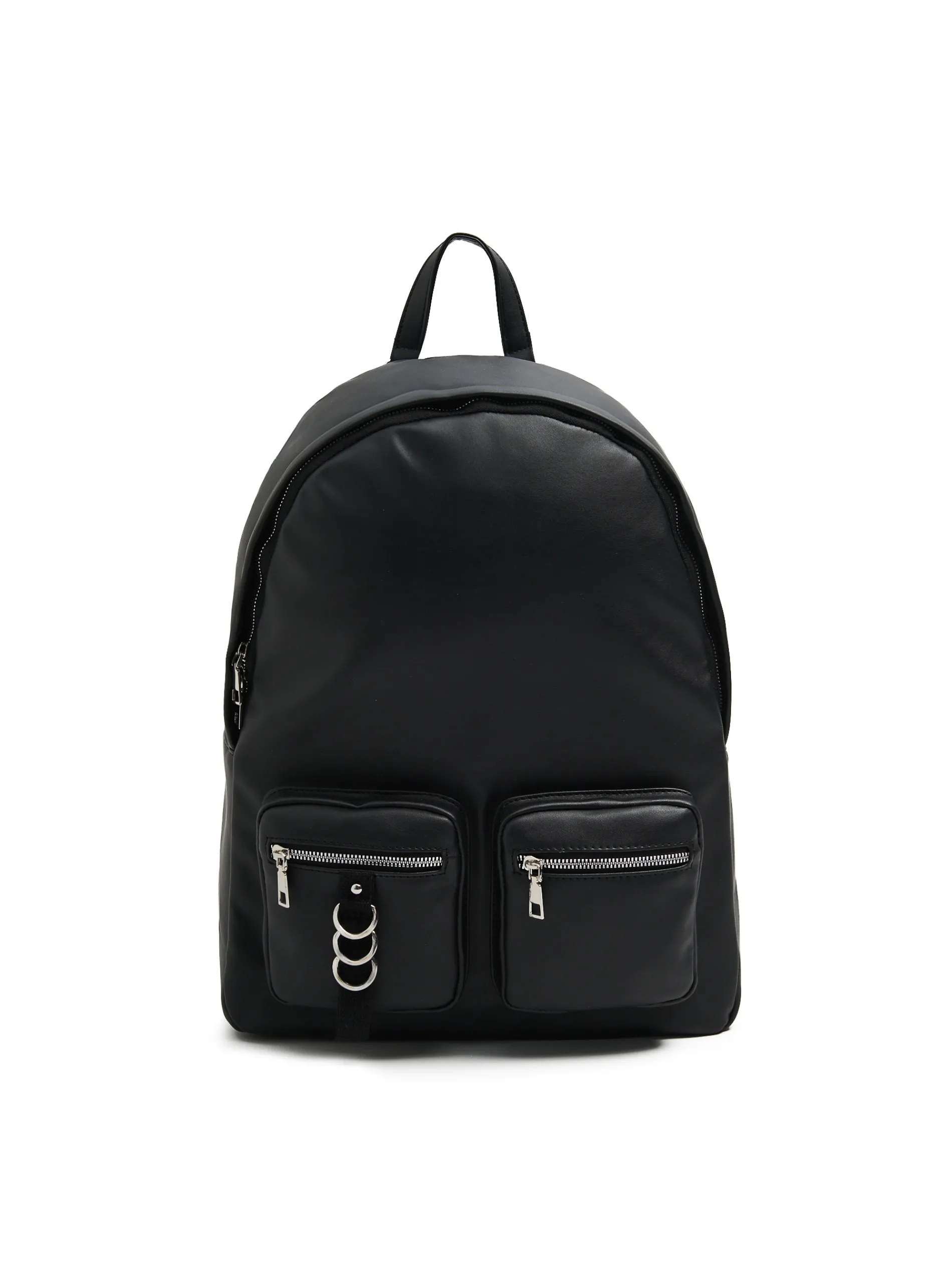 Damski plecak uszyty z gładkiej, czarnej tkaniny z wieloma wygodnymi kieszeniami i regulowanymi paskami. Pomieścisz w nim to, co najważniejsze na plenerowe meety! klasyczny plecak z zapięciem na zamek dwie duże kieszenie zewnętrzne, jedna kieszeń wewnętrzna główna komora z zapięciem na zamek szelki z regulacją długości uchwyt u góry metalowe detale przy zewnętrznej kieszeni Wymiary plecaka: 44cm x 34cm x 12cm