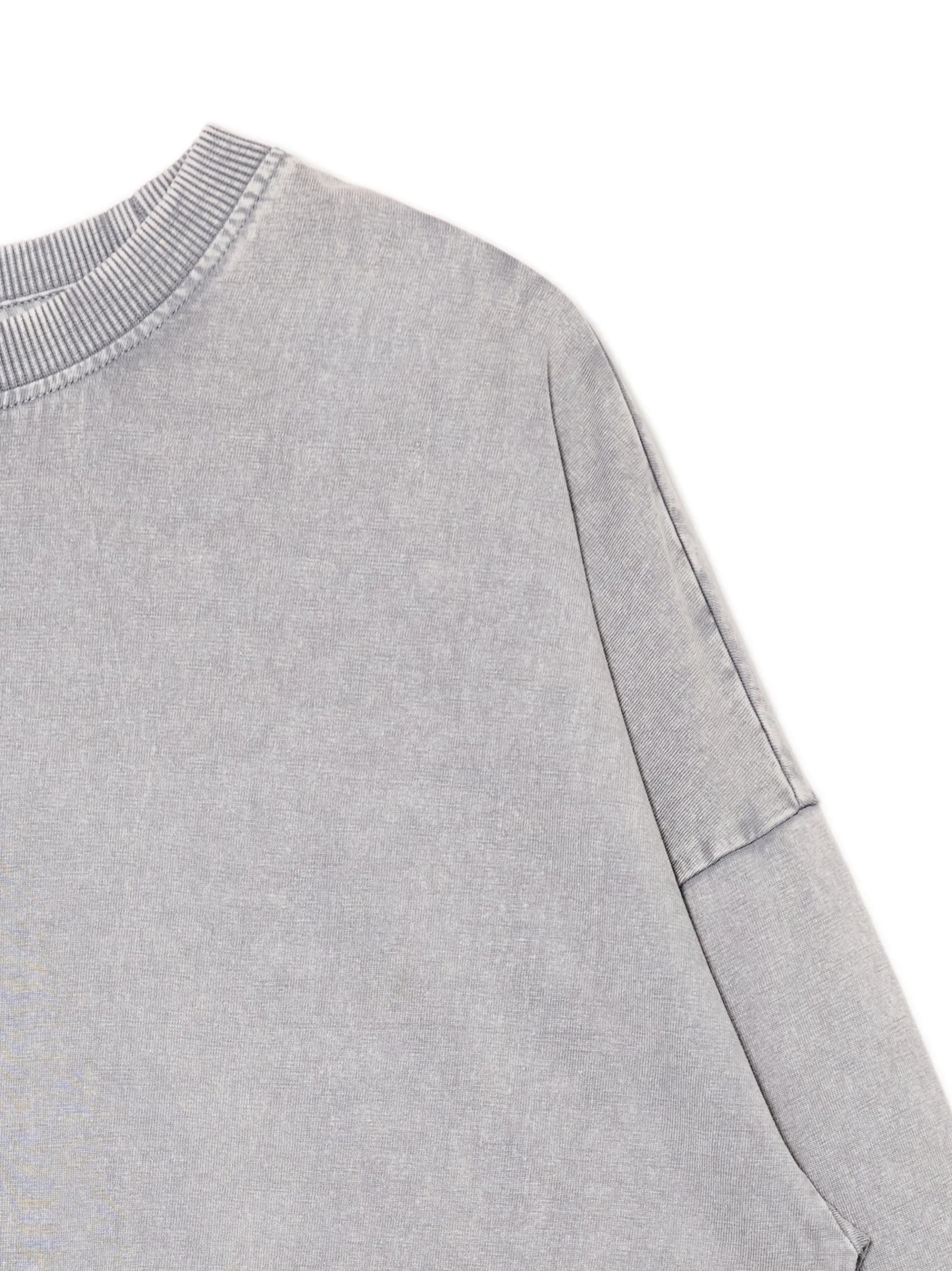 Damska koszulka z długim rękawem, uszyta z bawełnianej dzianiny w kolorze jasnoszarym. Swobodny, luźny krój i stonowane kolory sprawiają, że to casual na każdą okazję! 100% bawełny krój oversize okrągły dekolt z lamówką długie rękawy z obniżoną linią ramion Ten produkt należy do kolekcji UNISEX – zalecamy wybranie mniejszego rozmiaru niż zazwyczaj, jeśli chcesz uniknąć efektu oversize.