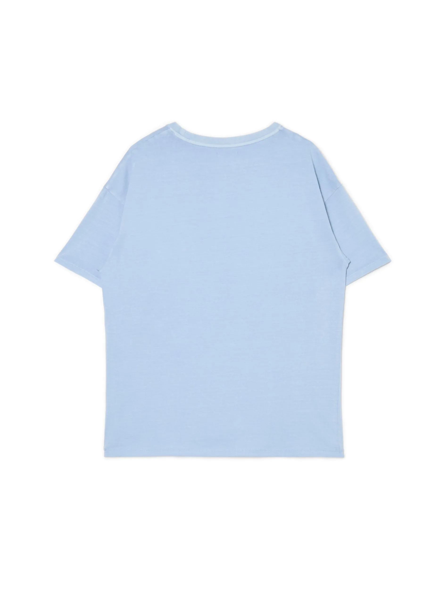 Damska koszulka z krótkim rękawem, uszyta z bawełny w niebieskim odcieniu. Na przodzie duży, oryginalny nadruk ze zwierzęcym motywem. 100% bawełny krój oversize krótkie, swobodne rękawy z przodu nadruk z motywem zwierzęcym Ten produkt należy do kolekcji UNISEX – zalecamy wybranie mniejszego rozmiaru niż zazwyczaj, jeśli chcesz uniknąć efektu oversize.