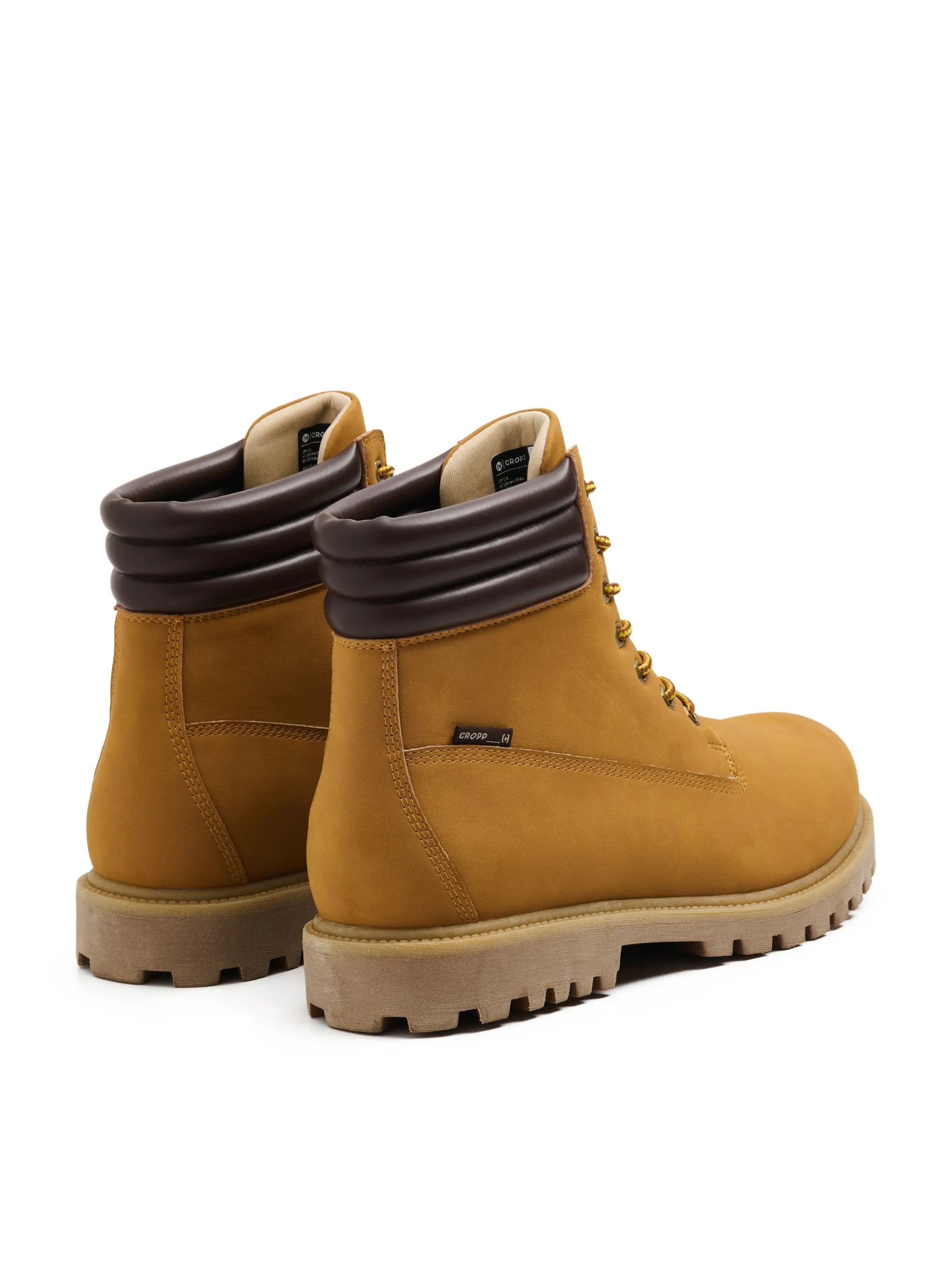 Winter is coming! Męskie buty trekkingowe typu worker wykonane ze sztucznej nubukowej skóry. Do tego kolorowe sznurówki, miękka wkładka i dekoracyjne przeszycia. Wejdź w zimowy vibe z naszymi butami! botki za kostkę cholewka z imitacji skóry lekkie gąbkowanie wokół kostki wiązane na sznurówki metalowe przelotki zapobiegające uszkodzeniu materiału traperowa podeszwa wykonana z gumy termoplastycznej naszywka Cropp